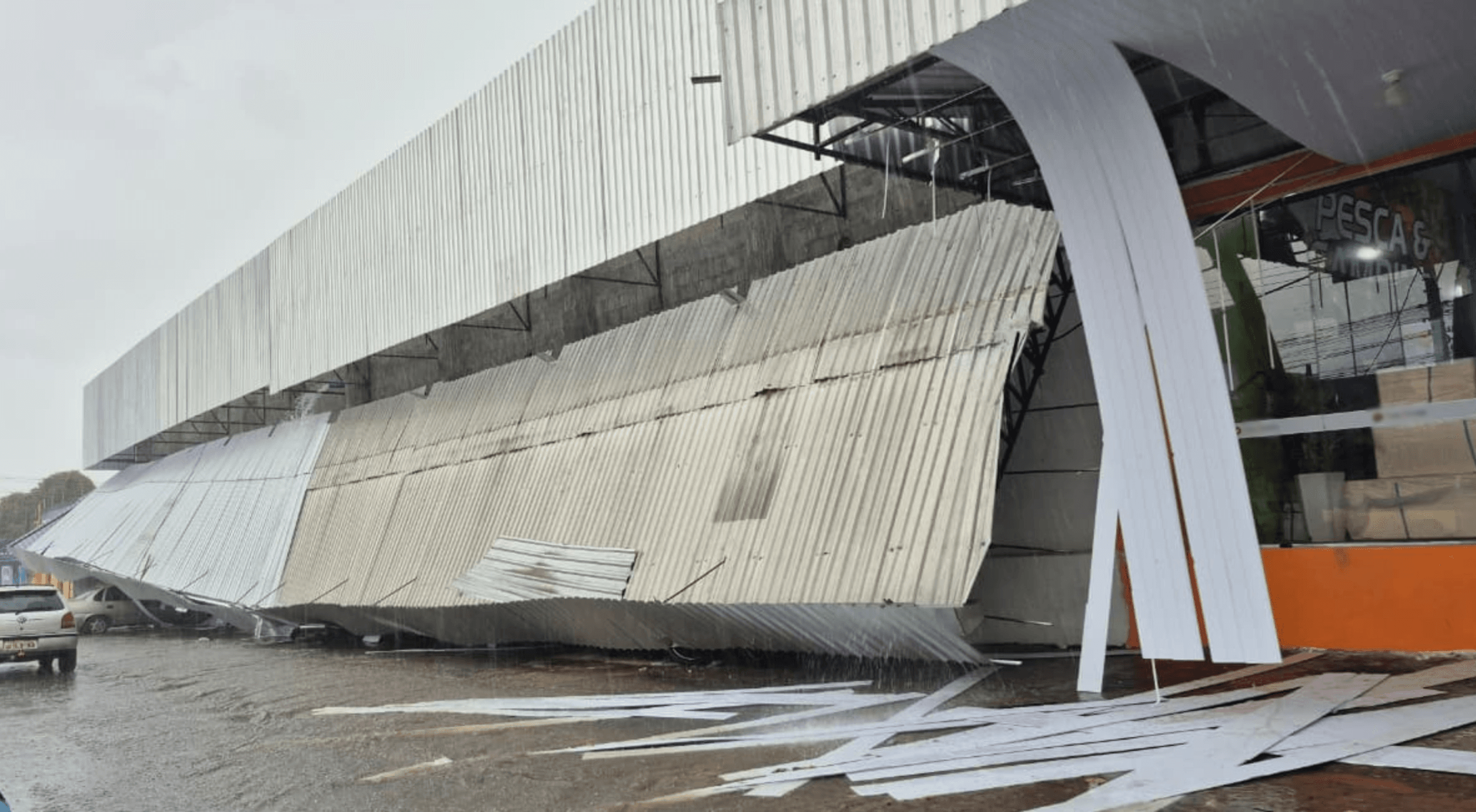 Fachada de Loja Desaba em Boa Vista e Causa Danos a Veículos Durante Tempestade
